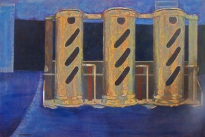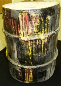 Ceramic Oil Can Sculpture. 17" height, 13" diameter.