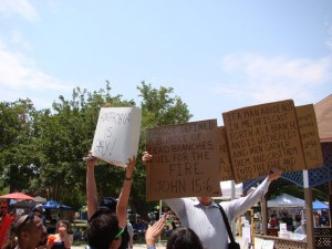 This weekend Las Cruces celebrated Southern New Mexico Pride, and the ACLU of New Mexico Regional Center for Border Rights was proud to be in attendance. As the ACLU staff collected signatures for a petition asking New Mexico Senator Jeff Bingaman to become a cosponsor of the bill that repeals the so-called "Defense of Marriage Act," we noticed that Southern New Mexico Pride had its first anti-gay protester.