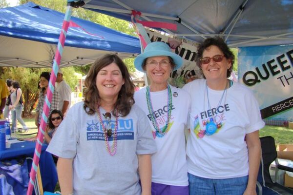 At PRIDE in Las Cruces: RCBR Director Vicki Gaubeca with Rebecca Dakota & Havens Levitt, lead plaintiffs in the ACLU-NM's domestic partner benefits lawsuit.